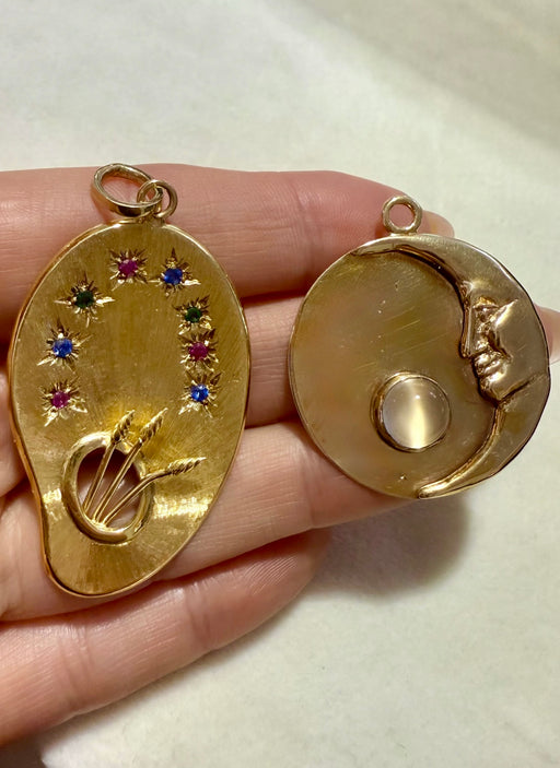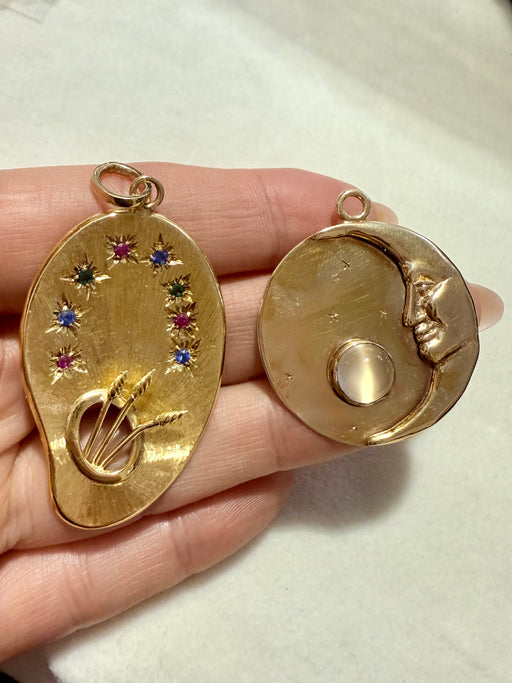 Blue Sapphire, Ruby & Emerald Artist Palette Charm, 18k