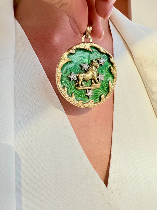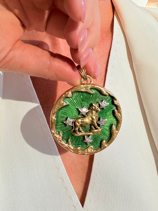 Taurus Zodiac Sign Enamel & Diamond Charm, Two Tone 18k
