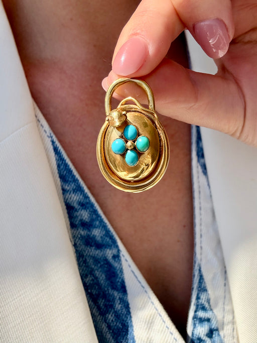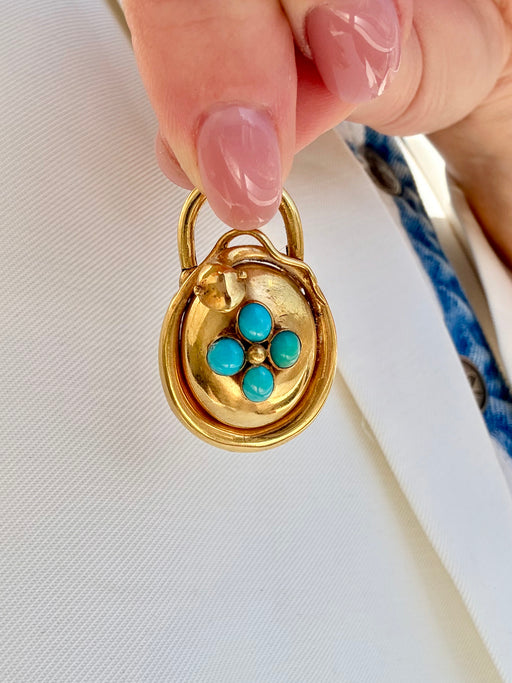 Turquoise Padlock Charm, 18k